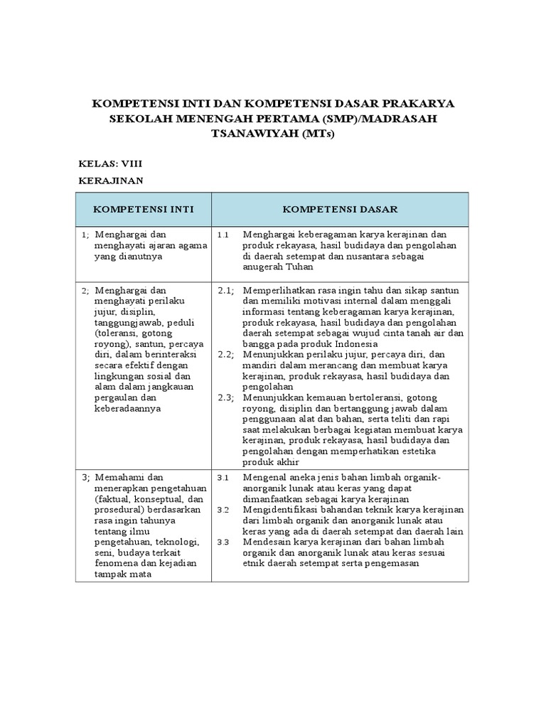 Doc Kompetensi Inti Dan Kompetensi Dasar Prakarya Sekolah Menengah Pertama Smp Madrasah Tsanawiyah Mts Kang Dayat Academia Edu from 0.academia-photos.com Download kkm k13 kelas 9 prakarya revisi terbaru. Analisis skl, ki, dan kd sekolah : Cd perangkat pembelajaran guru smp revisi teranyar sudah mengikuti anjuran menteri sesuai dengan permendikbud baru dgn format 1 lembar untuk kelas vii viii & 9 sudah lengkap dengan silabus, rpp, prota, promes, kkm, kikd dll. Mata pelajaran ini merupakan mata pelajaran baru yang ditetapkan dalam kurikulum 2013. Download kkm k13 kelas 9 bahasa indonesia revisi terbaru. Ki kd sederhana seni budaya kelas ix pdf. Teknologi informasi dan komunikasi menu menu materi sk & kd soal indikator remidi. Oleh karena itu agar memudahkan bapak dan ibu guru berikut kami sediakan rpp prakarya kelas 9 smp mts semester 2 revisi terbaru.